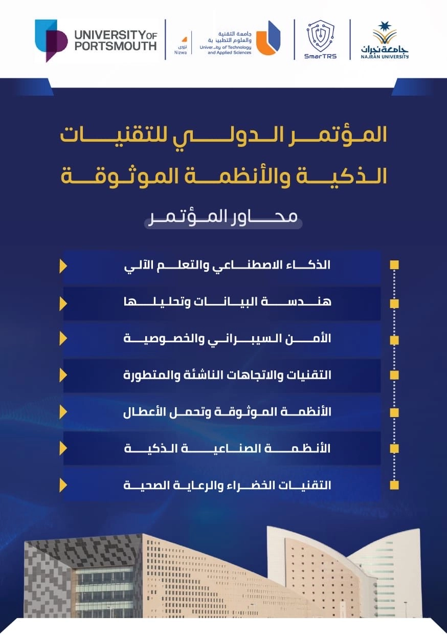 يقدم المؤتمر الدولي للتقنيات الذكية والأنظمة الموثوقة SmarTRS2025بـجامعة نجران فرصة تعزيز ثقافة الابتكار وتوسيع أطر التعاون البحثي الدولي في العديد من المجالات